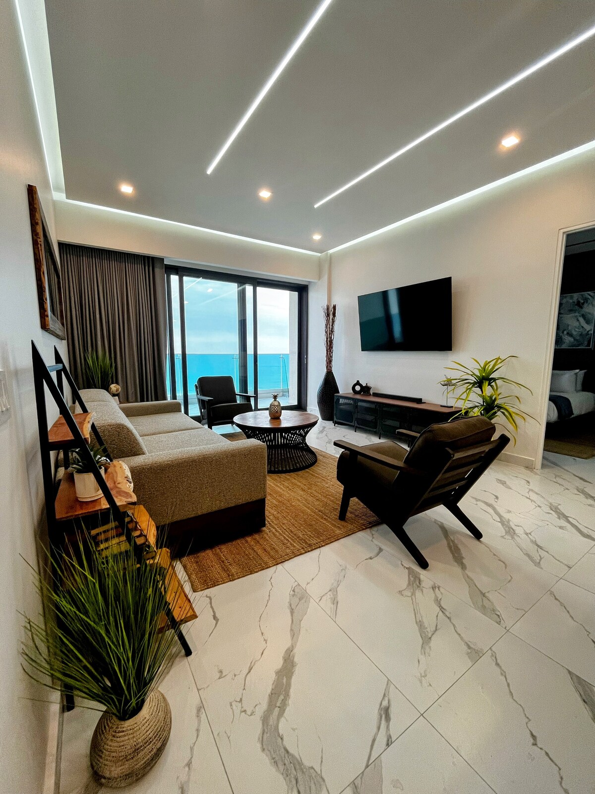 Ζήστε την παραθαλάσσια εμπειρία στο μοντέρνο και κομψό διαμέρισμα 2Br 2 BA. Κοιμηθείτε στον ήχο των κυμάτων και ξυπνήστε με ατελείωτη θέα στον ωκεανό. Ιδανικό για ζευγάρια ή οικογένειες με χώρο για 6 άτομα, πλήρως εξοπλισμένη κουζίνα και ιδιωτικό μπαλκόνι. Απολαύστε πισίνες παγκόσμιας κλάσης, πισίνα στον τελευταίο όροφο μόνο για ενήλικες, νεροτσουλήθρες, γυμναστήριο και χαλαρά ή εκλεκτά γεύματα! Ιδανικό για ηλιοβασιλέματα και χαλάρωση δίπλα στη θάλασσα!