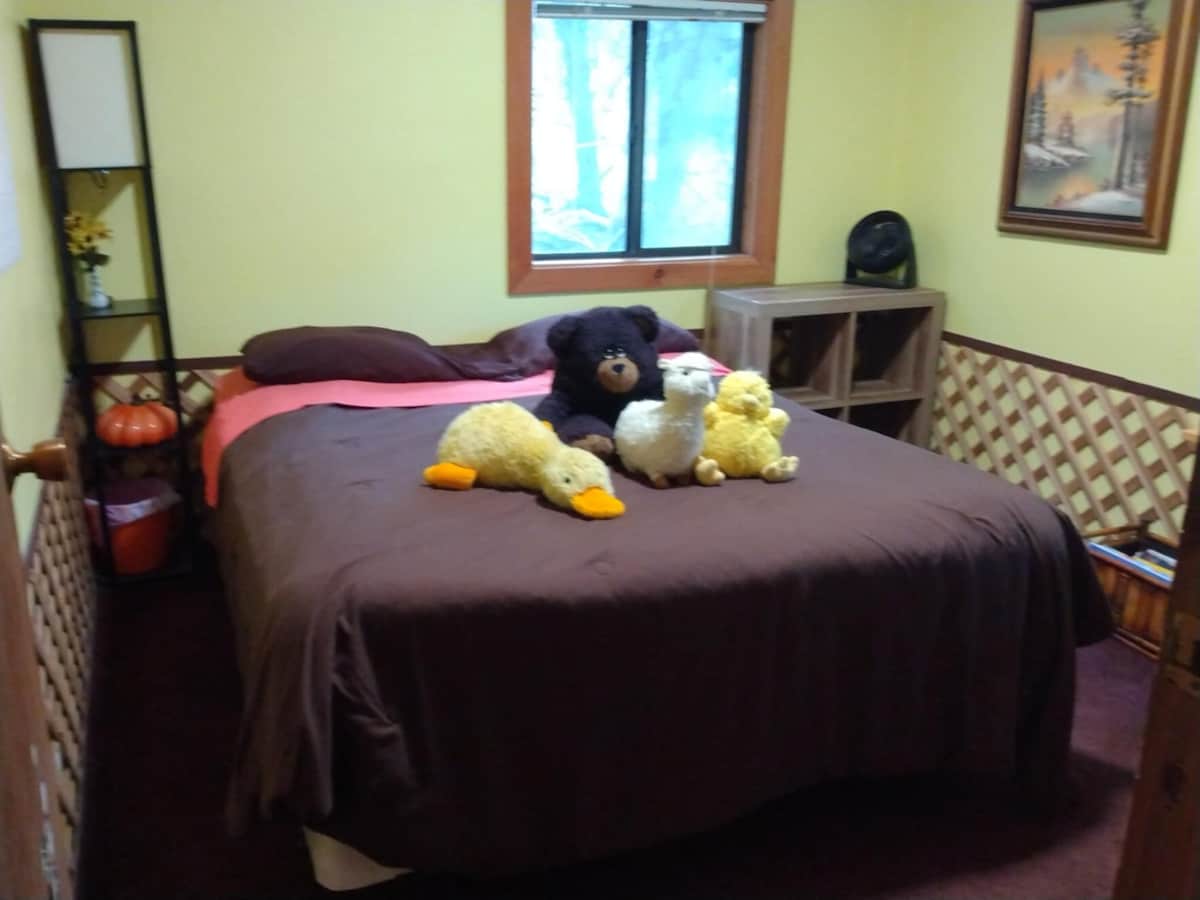 Beautiful Treehouse getaway for your family or a romantic getaway for two. Perched 17 feet above the pond's edge nestled in the trees. Enjoy a quiet warm campfire or relax on the dock and listen to the pond's waterfall. The Pond's Perch is the perfect spot to disconnect and rest after exploring the north cascades. The treehouse features a comfortable full-sized bed and a cozy murphy bed in the front room. Enjoy the fireplace, microwave, keurig, refrigerator, and indoor bathroom.