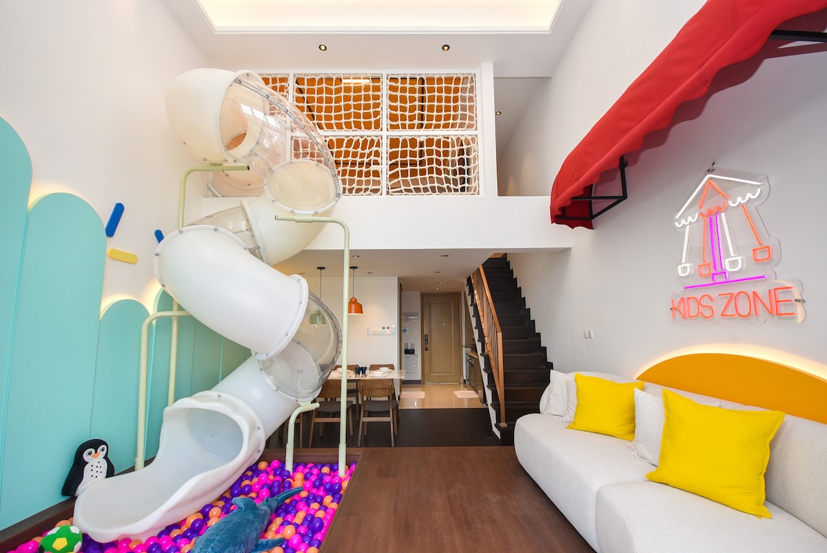 【】Παιδική χαρά με τσουλήθρα ζαχαρωτών και πισίνα με μπάλες σε R&F