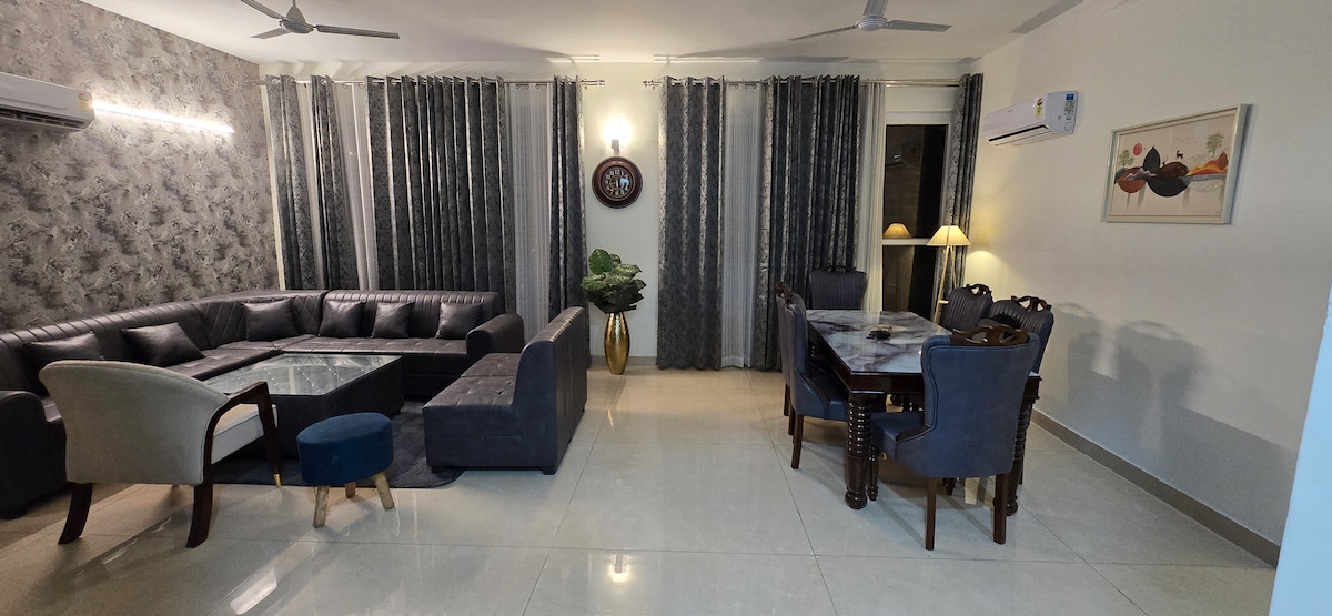 Κομψό αστικό καταφύγιο 3 υπνοδωματίων κοντά στο Τσαντιγκάρ!! • Ευρύχωρο, μοντέρνο 3BHK στο Sahibzada Ajit Singh Nagar, Mohali • Μόλις 7,5 χιλιόμετρα από το Εμπορικό Κέντρο Elante και λίγα λεπτά από τις καφετέριες και τις αγορές της πόλης. • Ιδανικό για οικογένειες, ταξιδιώτες για επαγγελματικούς σκοπούς και διακοπές με εργασία • Κομψή διαρρύθμιση, άνετα κρεβάτια και φωτεινοί χώροι διαβίωσης για να έρθετε πιο κοντά • Πλήρως εξοπλισμένη κουζίνα, τηλεόραση smart TV και Wi-Fi υψηλής ταχύτητας για ευκολία. • Ασφαλής, περιφραγμένη γειτονιά με πάρκινγκ και καθημερινή καθαριότητα. • Ελάτε να ζήσετε την καλή ζωή με το στυλ της Τρικίτι! Κάντε κράτηση πριν φύγει!