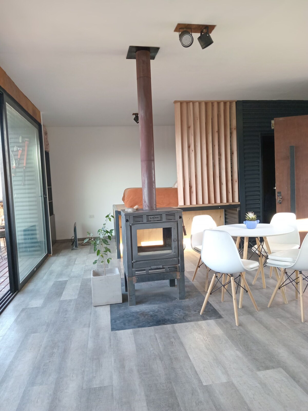 Χαλαρώστε με όλη την οικογένεια σε αυτό το ήσυχο κατάλυμα, καθώς αυτό το εξοχικό είναι χτισμένο εξ ολοκλήρου από ξύλο που το κάνει ζεστό και ευχάριστο. Είναι εμπνευσμένο από ένα μικροσκοπικό σπίτι όπου κάθε μέρος έχει νόημα και αξιοποιεί πλήρως τον χώρο, διαθέτει πλήρως εξοπλισμένη κουζίνα, ζεστό νερό, wifi, θέρμανση, smartv, ντους με νερό υπό πίεση. Το εξωτερικό μας προσφέρει μια κουρτίνα από λεύκες που το καλοκαίρι μας παρέχει απίστευτη σκιά και φθινόπωρο!! πρέπει να το δείτε