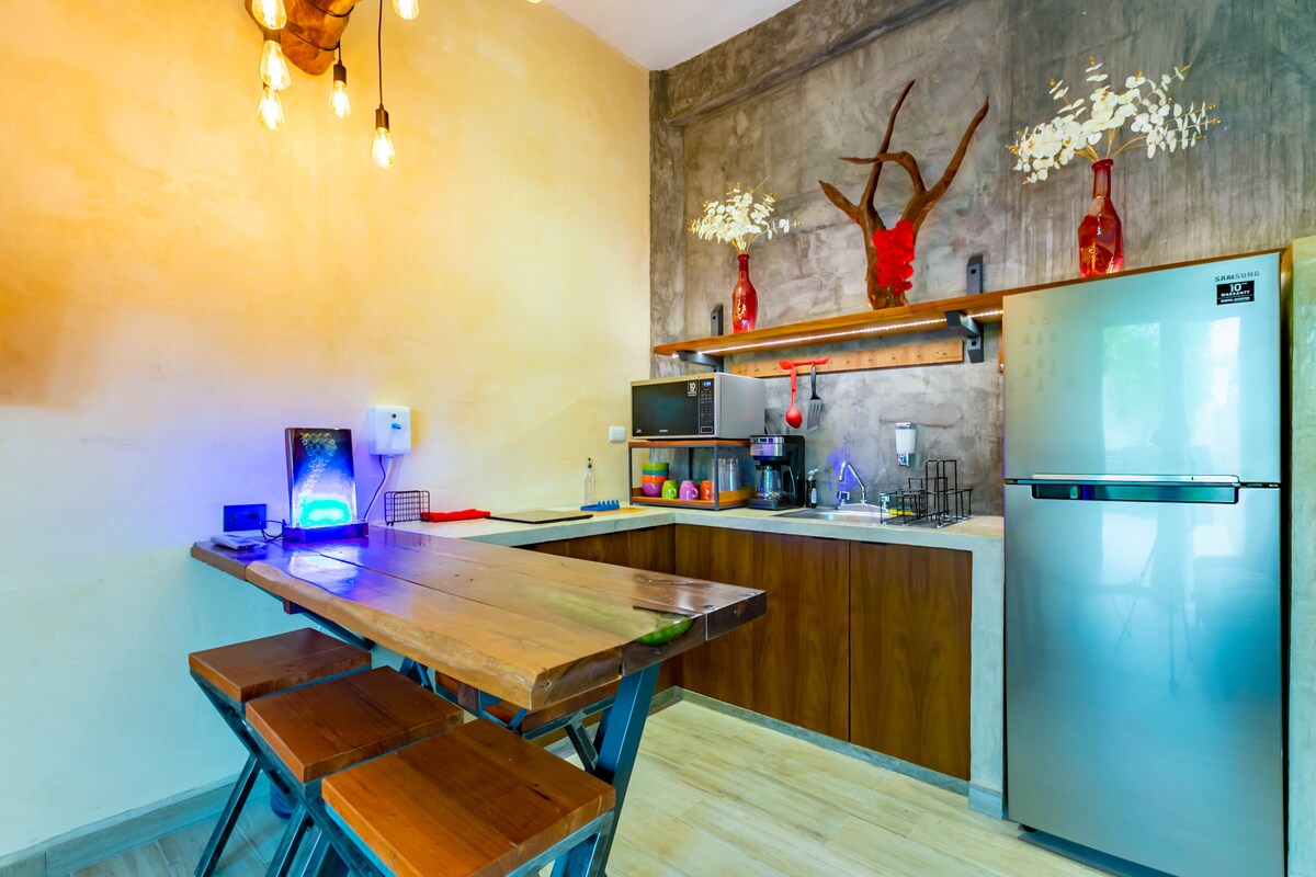 Το Sotavento, λίγα βήματα μακριά από τα δημοφιλή σημεία του νησιού, όπως το Garrafon, το Joint και οι γκρεμοί της Punta Sur, προσφέρει θέα στον κόλπο, στον ορίζοντα του Κανκούν. Αυτή η μονάδα προσφέρει μια βίλα 1 υπνοδωματίου, 2 ορόφων, σε στυλ σοφίτας, που είναι επιπλωμένη και εξοπλισμένη για μια απόδραση στο νησί. Θα διαπιστώσετε ότι αυτή η ιδιοκτησία είναι ζεστή, φιλόξενη, ρομαντική και κατάλληλη για ζευγάρια που αναζητούν μια ιδιωτική και ήρεμη διαμονή. Σημειώσεις: Οι κανόνες της Airbnb για τη νόσο Covid-19 ισχύουν για όλες τις κρατήσεις. Επίσης, ο οικοδεσπότης δεν είναι υπεύθυνος για ακυρώσεις που σχετίζονται με τον καιρό ή την κυβέρνηση.