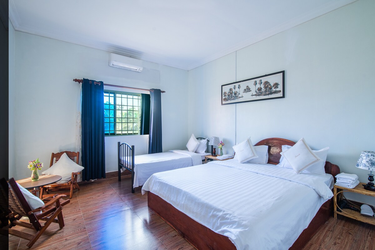 Αυτό το κατάλυμα έχει επιλεγεί τα παραδοσιακά σπίτια με διακοσμητικά καλύμματα σε στυλ Χμερ δίπλα στον λαχανόκηπο. Οι επισκέπτες θα εξερευνήσουν την πραγματική εμπειρία ζωής των ντόπιων, όπως η καλλιέργεια των λαχανικών, το μαγείρεμα φαγητού, η παρασκευή κρασιού ρυζιού, η ποδηλασία σε χωριό, η επίσκεψη σε παγόδα, η επίσκεψη σε μουσεία και η επίσκεψη στην αγορά. Η συνεισφορά σας μένοντας μαζί μας σημαίνει ότι βοηθάτε τους ανθρώπους μας δημιουργώντας τη δουλειά, μοιράζοντας τις γνώσεις και τις εμπειρίες σας και βελτιώνοντας το περιβάλλον του χωριού.