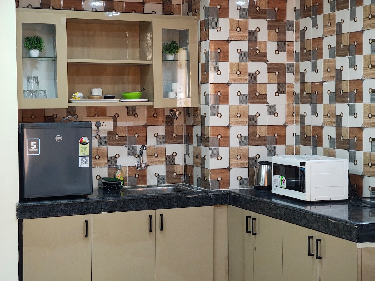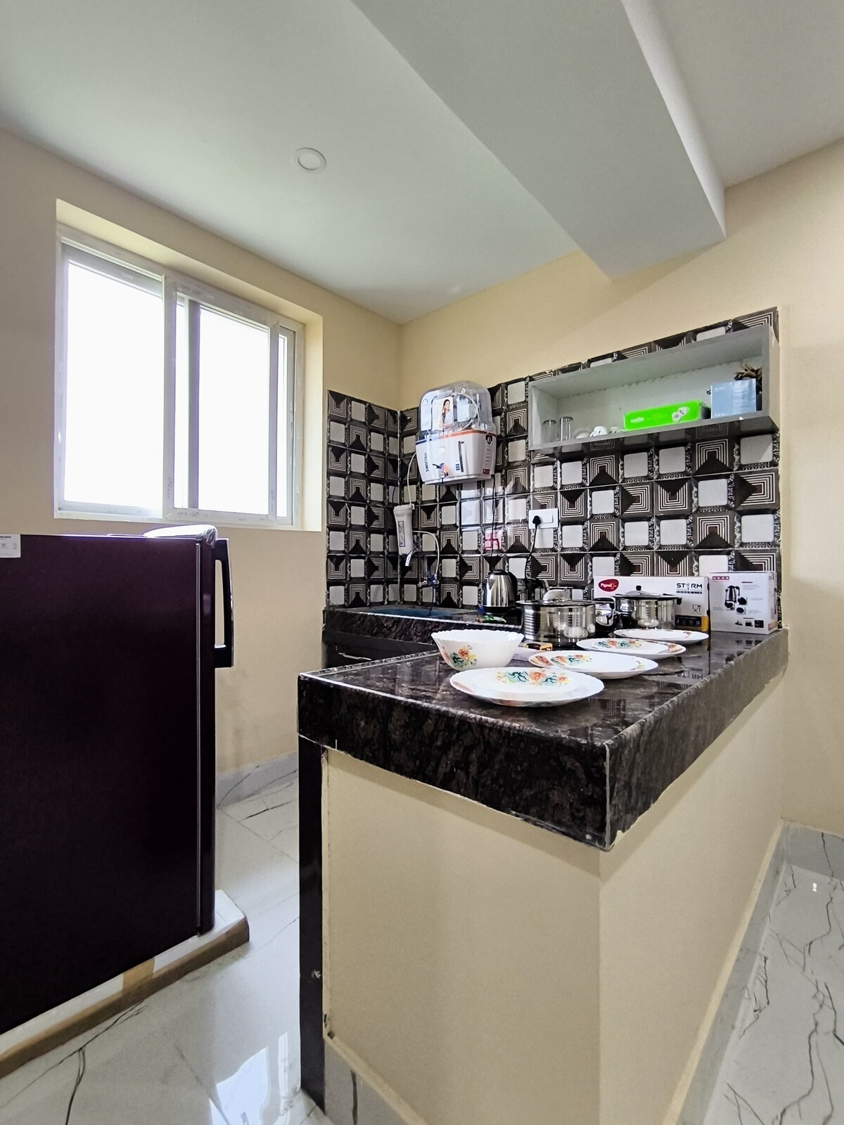 Aahana's Home- Prime Location in Puri THE SPACE --- This property consists of 1 bedroom and 2 Beds , 1 Bithroom , Drawing and Dining space with an open Kitchen .It is also has a small Balcony. This property is fully furnished residential unit with a working Kitchen. Appliances Available --- 1 - Fridge 2-washing machine 3- 2 Air conditioner 4-Geyser 5-Wifi router 6-chimney 7-Inverter 8-Gas cylinder with stove 9-iron 10- Aquaguard 11- Digital lock on main door