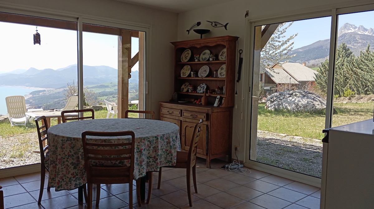 Ευρύχωρο άνετο σαλέ που συνδυάζει σύγχρονη άνεση και ζεστή ατμόσφαιρα για μια αξέχαστη διαμονή. Ιδανική τοποθεσία απέναντι από τη λίμνη Serre-Ponçon. Απολαύστε πανοραμική θέα στη λίμνη και τα γύρω βουνά από τη βεράντα με την οικογένεια, τους φίλους, τα ζευγάρια που αναζητούν χαλάρωση και φύση σε οποιαδήποτε εποχή. Κοντά σε θαλάσσιες δραστηριότητες στη λίμνη (βάρκα, σανίδα κωπηλασίας, καγιάκ, ρυμουλκούμενο). Πεζοπορία και περπάτημα στα βουνά Ορεινή ποδηλασία και ποδηλασία δρόμου Χιονοδρομικό κέντρο σε απόσταση 1 ώρας.
