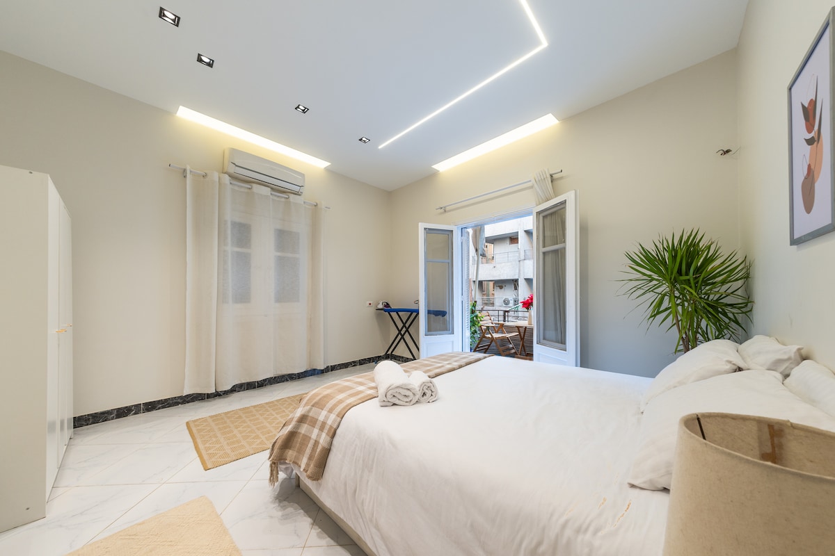 A full apartment in a spacious Secret Garden rooftop with panoramic sunrises, blue skies & full moons in Cairo’s Downtown heritage center, just minute’s walk from markets, tourist attractions & central metro station. This newly renovated 70s apartment is minimalist, modern yet warm, a one-of-a-kind designer space in the heart of the capital, combining both urban & natural elements of Mediterranean architecture. As superhosts & artists we always try our best to make your stay a memorable one.