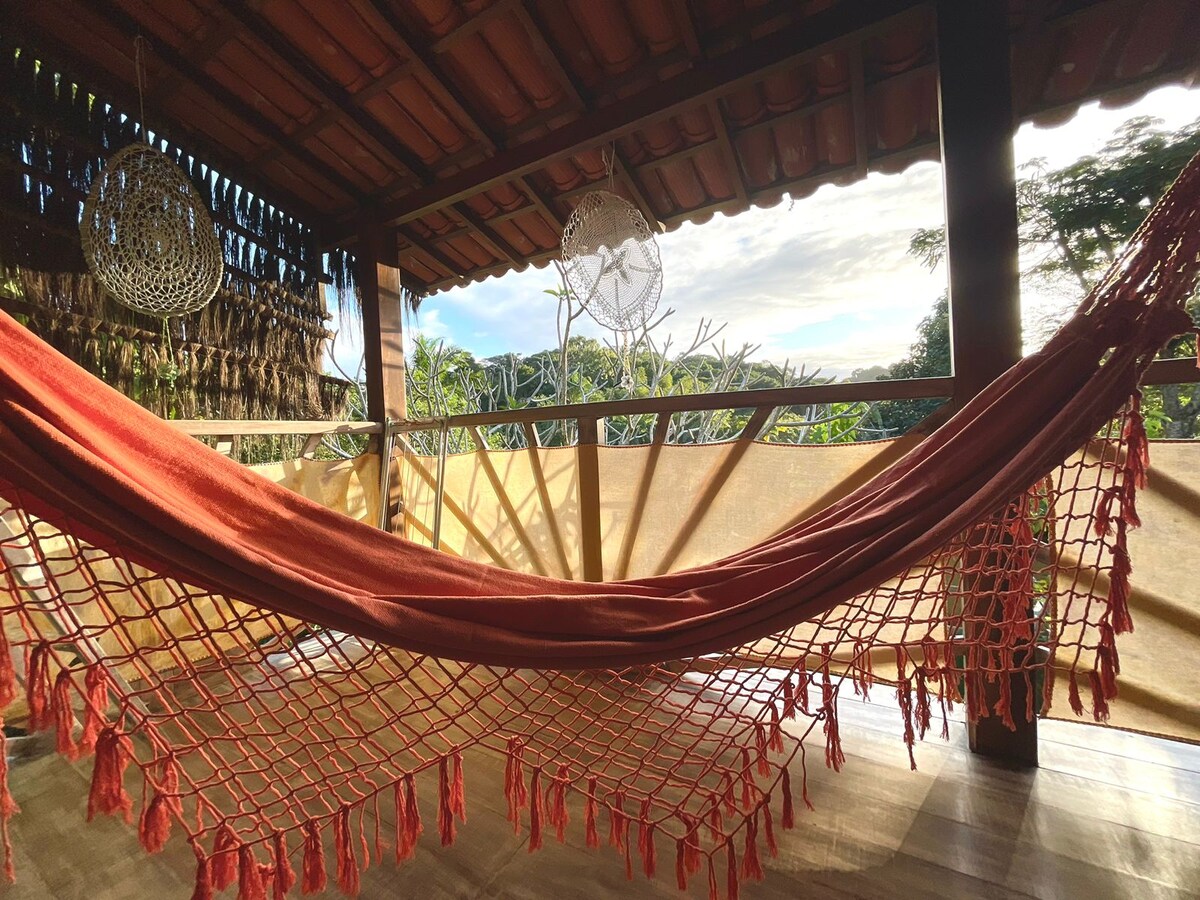 Sustainable Forest Bungalow with sea view near Morro de Sao Paulo Escape to this unique and tranquil hideaway located in the tropical forest of Gamboa. This elegant, distinctive bungalow is accessed via an elevated wooden path winding through the forest. Enjoy breakfast served in your bungalow. Immerse yourself in the surrounding nature. Perfect for those seeking relaxation and a touch of adventure.