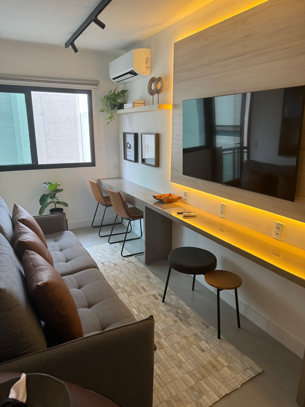 Διαμέρισμα για έως 3 άτομα ( ο καναπές στο σαλόνι είναι καναπές-κρεβάτι. Ωστόσο,όταν είναι ανοιχτό, το δωμάτιο είναι γεμάτο ). Δίπλα σε καλά εστιατόρια , κοντά στο Oscar Freire . Bairro Jardins. Στον τελευταίο όροφο, έχει ένα μικρό γυμναστήριο, εσωτερική πισίνα και μίνι μάρκετ. Μικρό αλλά καλά εξοπλισμένο διαμέρισμα. Στη γωνία, υπάρχει ένα σούπερ μάρκετ Carrefour μέσα στο εμπορικό κέντρο Jardim Pamplona. Στο διαμέρισμα υπάρχει πάγκος για φαγητό. Δεν υπάρχει γραφείο. Ωστόσο, στον τελευταίο όροφο, στο μίνι μάρκετ, υπάρχουν τραπέζια που μπορείτε να χρησιμοποιήσετε.