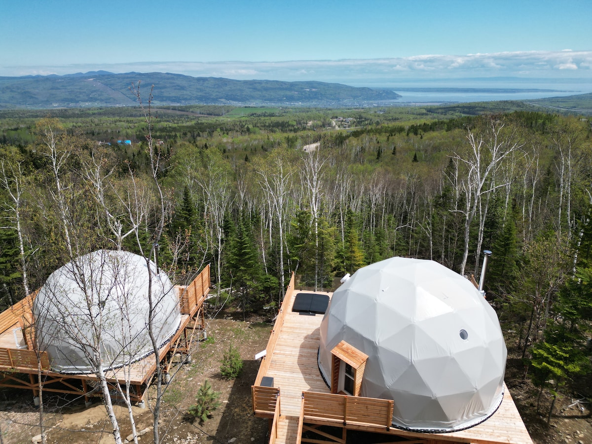 LE LUXE À LA MONTAGNE Dômes Charlevoix est un concept d'hébergement touristique quatre saisons permettant de vivre une expérience nature en tout confort. Érigés à flanc de montagne, les dômes offrent une vue impressionnante sur le fleuve et les alentours. À mi-chemin entre Baie-Saint-Paul et Le Massif de Charlevoix, les dômes sont le point de départ idéal pour découvrir la magnifique région de Charlevoix. Jamais la nature ne vous aura paru aussi confortable.