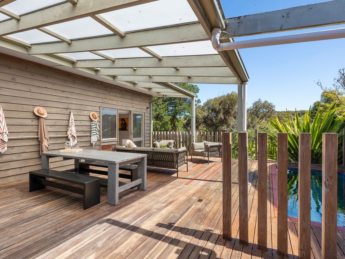 Family Beach House - walk to beaches, shops & parks. Relax in this renovated and light-filled home on a quiet, tree-lined street close to the beach. Just a short walk away, you'll find the Point Lonsdale Front Beach, coastal tracks and cafés. The place is fully fenced and there is a spacious lawn area and garden. Relax with a coffee in the morning on the north facing deck and in the afternoon enjoy the front garden after a day of exploring. Ideal for families and smalll groups.