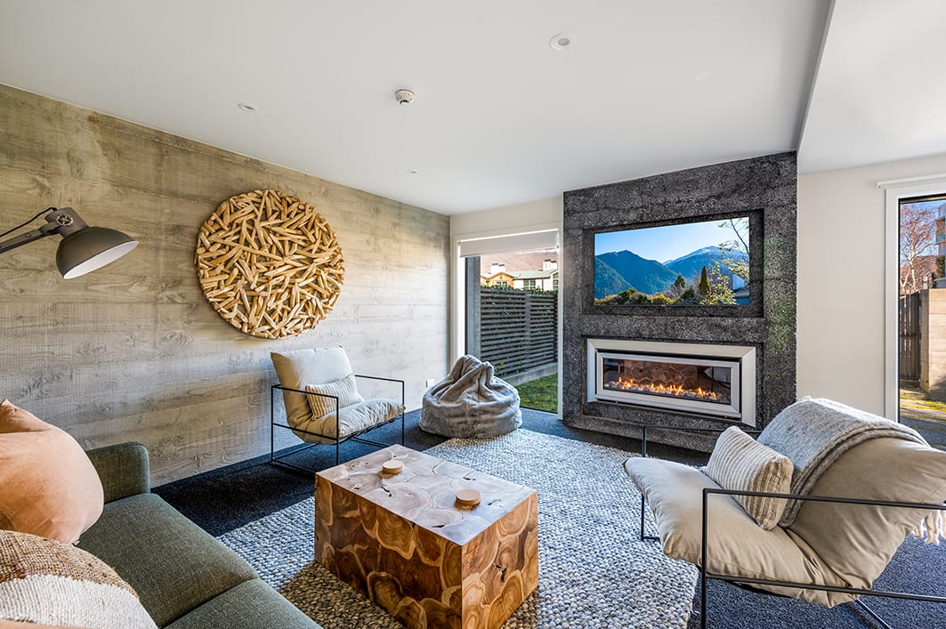 This newly refurbished home, just a short walk into the centre of Queenstown, provides the perfect spot to be close to all the action this vibrant town has to offer. Ruru Retreat has two seperate living areas. The main open plan living and dining space is lake facing with large windows maximising the panoramic views of Lake Wakatipu and the Remarkables Mountain Range. With a log fireplace it provides the ideal ambience to cozy up to in winter after a day spent skiing on the nearby fields.