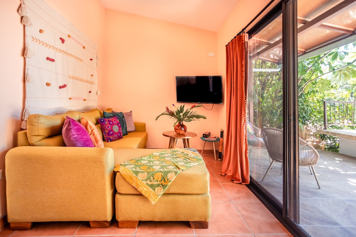 Αποκοιμηθείτε και ξυπνήστε με τον ήπιο ήχο ενός κοντινού ρυακιού τροπικού δάσους, τα μακρινά κύματα του ωκεανού και τα τροπικά πουλιά στις λαμπερές κορυφές των δέντρων. Αυτό το μοντέρνο αλλά άνετο 1bd/1ba διαθέτει όλα τα απαραίτητα για την κουζίνα, μπάρμπεκιου και ένα πολυτελές μπάνιο με θέα στη ζούγκλα και διπλές κεφαλές ντους. Βγείτε έξω και μπείτε στην πισίνα υπερχείλισης με προσαρμόσιμο φωτισμό και θέα στον ωκεανό. Πίθηκοι, βραδύποδες, τούκανοι, κοάτι και καταρράκτες αφθονούν. Περιβάλλετε τον εαυτό σας με γαλήνια, ζωντανή, φυσική ομορφιά.