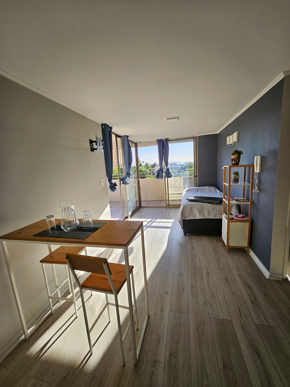 Acogedor y tranquilo estudio con cocina equipada y aire acondicionado, ideal para una estadía cómoda en Santiago. Ubicado a pasos del Parque Quinta Normal y cercano a Metro Gruta de Lourdes y Quinta Normal, con excelente conectividad. Cerca de Matucana 100, museos, Hospital San Juan de Dios, Biblioteca de Santiago, comercios y Autopista Central. A solo 20 min del aeropuerto. El edificio cuenta con plaza elevada con vista al parque y la Basílica de Lourdes. Estacionamiento disponible.