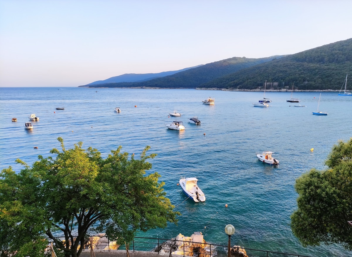 Ώρα να ονειρευτείτε πάνω από τη θάλασσα. Ένα διαμέρισμα στον τελευταίο όροφο ενός οικογενειακού σπιτιού, με εκπληκτική θέα, και εννοώ εκπληπτική θέα στη θάλασσα, στον κόλπο και επίσης στην Παλιά Πόλη του Labin. Βρίσκεται σε περιοχή κοντά στη θάλασσα. Η απόσταση με τα πόδια από την πλησιέστερη και μεγαλύτερη παραλία στο Rabac είναι 250 μέτρα. Η διακόσμηση του διαμερίσματος είναι καθαρή, φρέσκια και μοντέρνα (δείτε τις φωτογραφίες). Ιδανικό για 2 άτομα - ζευγάρια, καλύτερους φίλους, μοναχικούς λάτρεις της περιπέτειας, ταξιδιώτες για επαγγελματικούς σκοπούς.