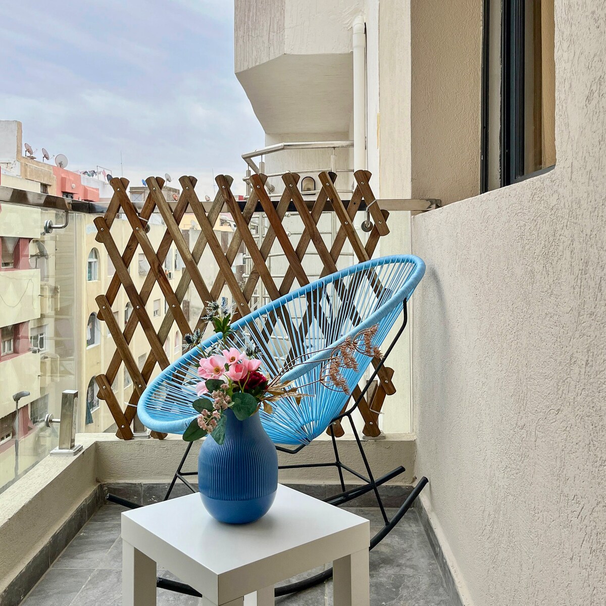 Όμορφο διαμέρισμα δύο υπνοδωματίων πλήρως ανακαινισμένο με μαροκινή και μοντέρνα πινελιά Προσφέρει εκπληκτική θέα στη θάλασσα από το μπαλκόνι και όλα τα υπνοδωμάτια . Η κατοικία βρίσκεται κατά μήκος του Rabat corniche, προσφέροντας εύκολη πρόσβαση σε εστιατόρια και παραθαλάσσια καταστήματα σε κοντινή απόσταση, Και μόλις λίγα λεπτά με το αυτοκίνητο από τον σιδηροδρομικό σταθμό Rabat Agdal Δωρεάν ιδιωτικός χώρος στάθμευσης σύνδεση υψηλής ταχύτητας. Πλήρως εξοπλισμένη κουζίνα Κλιματιστικό στο σαλόνι