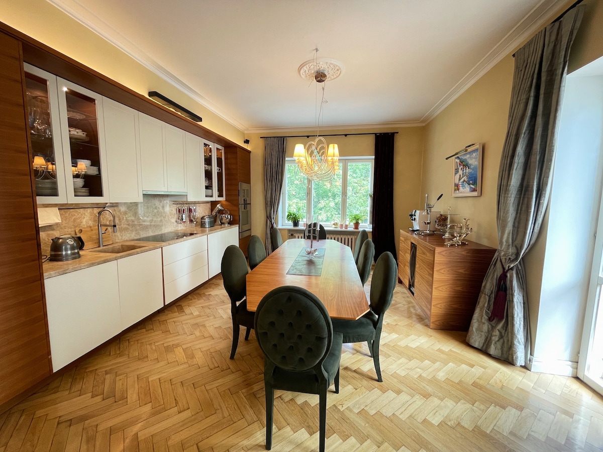 Stay in a spacious 150m² apartment in a beautifully preserved historic house in central Tallinn. Once home to five families during the Soviet era, it now offers the rare chance to experience grand living in a peaceful neighborhood. Just 10 minutes’ walk to Old Town, next to Tallinn’s loveliest park. Grocery stores and fresh market just minutes away—perfect for discovering the city in comfort and style.