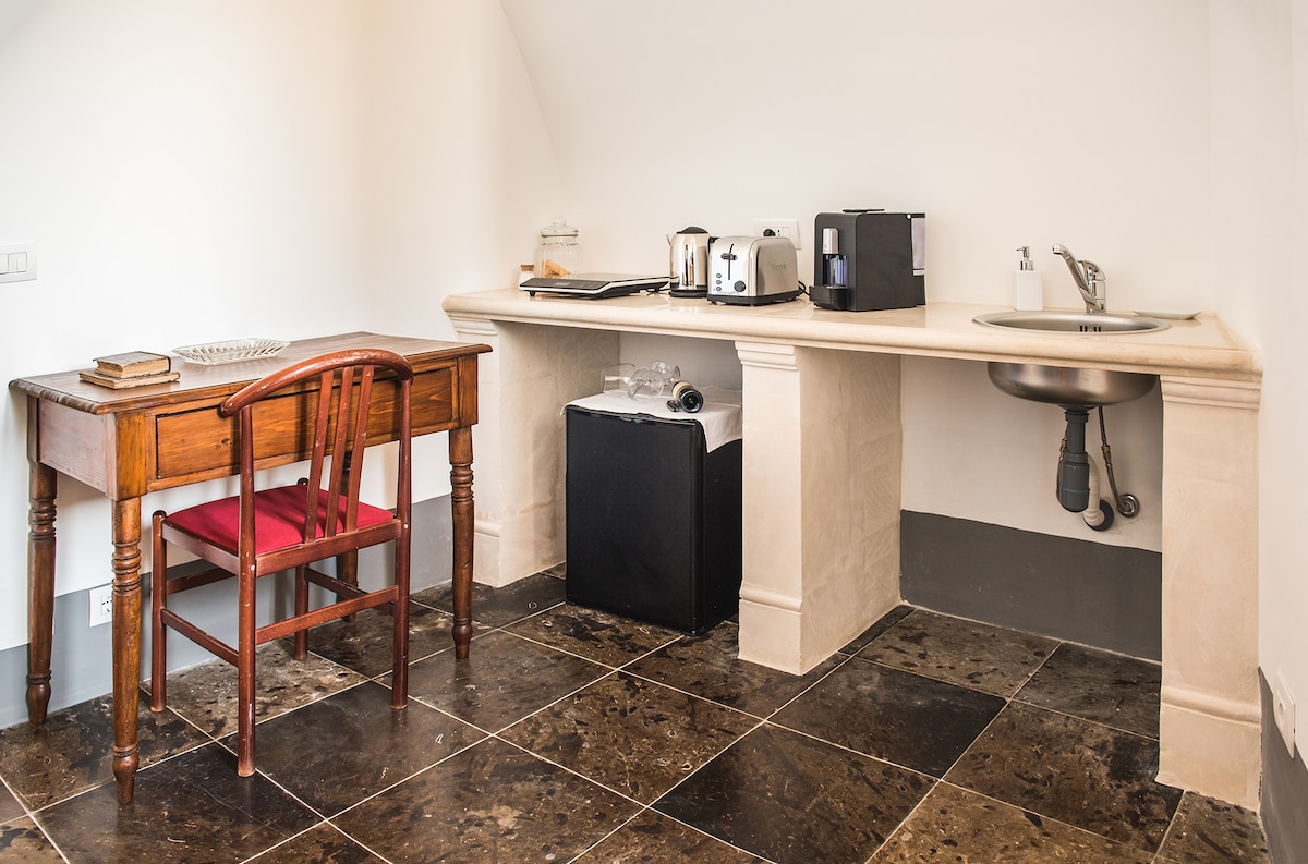 La nostra camera, è dotata di tutti i confort: TV climatizzatore, cucina attrezzata e frigo, phon, WI FI ,bagno privato, tris di asciugamani, caffè ,biscotti, fette biscottate, nutella, marmellata e acqua. Si colloca nel centro storico di Ragusa, a due passi dalle scale di Santa Maria che portano Ibla, la parte più antica della città; a 3 minuti a piedi c'è il centro storico di Ragusa superiore "Piazza San Giovanni"ricco di negozi e ristoranti, adiacente alla struttura vi è piazza Cappuccini.