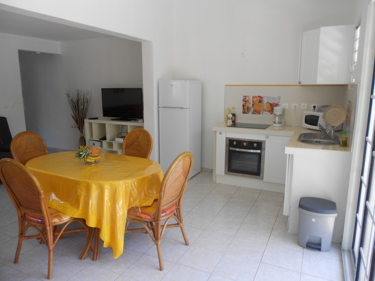 Charmante maison disposant d'un magnifique T3 de plain pied. Il dispose d'un grand et beau séjour lumineux donnant sur terrasse avec jardin, de deux chambres climatisées, d'une salle d'eau et d'une cuisine équipée. Situé à proximité des plages de la Pointe de la Verdure, de l'Anse Tabarin et de la Datcha, ainsi que des commerces.