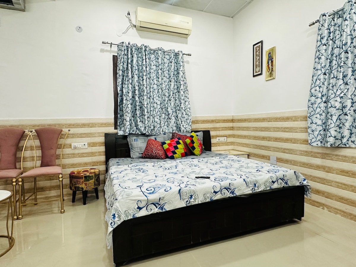 Καλώς ήρθατε στο σπίτι σας μακριά από το σπίτι σας στο South Extension! Απολαύστε ένα πλήρως ανεξάρτητο κατάλυμα 4 υπνοδωματίων σε μία από τις πιο πολυτελείς και κεντρικές γειτονιές του Δελχί. Κάθε δωμάτιο διαθέτει μπάνιο και ιδιωτικό μπαλκόνι για την άνεση και την ιδιωτικότητά σας. Το κατάλυμα περιλαμβάνει ασανσέρ για εύκολη πρόσβαση, ιδιωτικό χώρο στάθμευσης και προσωπικό φύλακα για να σας βοηθήσει με την άφιξη και την αναχώρηση. Θα χαρούμε να σας φιλοξενήσουμε και να εξασφαλίσουμε μια ομαλή, άνετη εμπειρία!