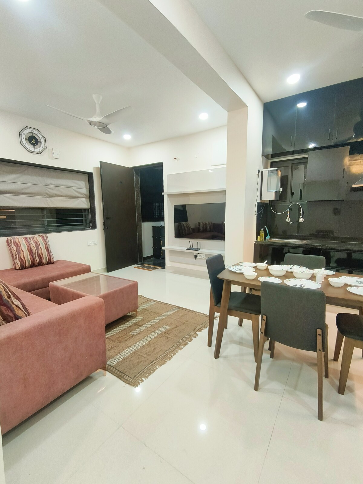 Χαλαρώστε με το στέλεχος και έναν ήσυχο χώρο διαμονής. Το κεντρικό μέρος σας καλωσορίζει σε αυτό το διαμέρισμα 2 υπνοδωματίων. Μόλις μπείτε, η τηλεόραση 4k και ο καναπές στο χολ το καθιστούν ιδανικό για ταινίες και χαλάρωση. Η απρόσκοπτη σύνδεση WiFi είναι ιδανική για την εργασία σας. Έχετε μια απλή και χρήσιμη κουζίνα στα αριστερά σας, Ευρύχωρο κύριο υπνοδωμάτιο με υπέρδιπλο κρεβάτι και το δεύτερο υπνοδωμάτιο έχει ένα διπλό κρεβάτι και τα δύο έχουν ενσωματωμένα μπάνια με κλιματισμό. Και τα δύο υπνοδωμάτια έχουν κλιματισμό 1,5 τόνου.