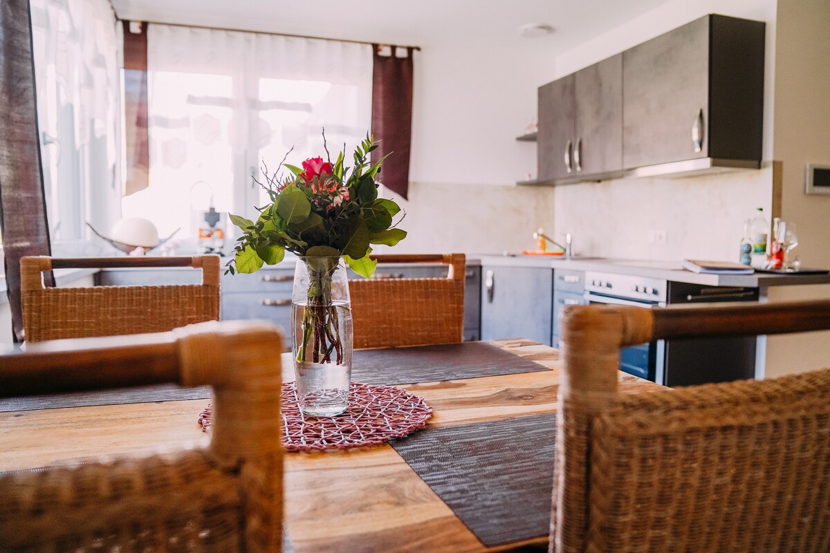 Μαζί μας μπορείτε να χαλαρώσετε σε ένα διαμέρισμα που είναι διακοσμημένο με αγάπη, με θέα στον κήπο, να απολαύσετε τον ήλιο στο μπαλκόνι και να ακούσετε τα πουλιά να κελαηδούν. Μετά από μια βόλτα στη φύση, ένας άνετος καναπές σας προσκαλεί να χαλαρώσετε και να παρακολουθήσετε τηλεόραση και να ανακτήσετε τις δυνάμεις σας το βράδυ στο άνετο διπλό κρεβάτι. Στην καλά εξοπλισμένη κουζίνα μπορείτε να απολαύσετε τον καφέ σας και να ικανοποιήσετε την πείνα σας. Ανυπομονούμε να σας καλωσορίσουμε.