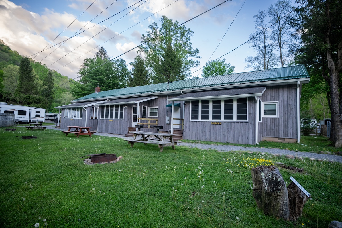 Αυτό που ήταν ένα σχολείο της δεκαετίας του 1950 είναι τώρα ένα όμορφα ΑΝΑΚΑΙΝΙΣΜΈΝΟ ξυλόσπιτο στο Revelle 's River Resort... 2 υπνοδωμάτια, πλήρες μπάνιο, πλήρης κουζίνα. Κρεβάτι Queen στο LR. Και τα 3 Rainbows μοιράζονται 1 τζακούζι. Λίγα μόλις βήματα από τον ποταμό Shaver's Fork, οι επισκέπτες έχουν πρόσβαση σε μερικά από τα καλύτερα μέρη για ψάρεμα πέστροφας στην περιοχή. Φέρτε τα παιδιά και πάρτε μέρος στις προγραμματισμένες δραστηριότητές μας. ΤΑ ΚΑΤΟΙΚΊΔΙΑ ΕΊΝΑΙ ΕΥΠΡΌΣΔΕΚΤΑ ΜΕ ΧΡΈΩΣΗ, ΑΛΛΆ ΠΡΈΠΕΙ ΝΑ ΕΓΚΡΙΝΟΝΤΑΙ ΚΑΤΆ ΤΗΝ ΚΡΆΤΗΣΗ. ΧΩΡΊΣ ΕΞΑΙΡΈΣΕΙΣ.