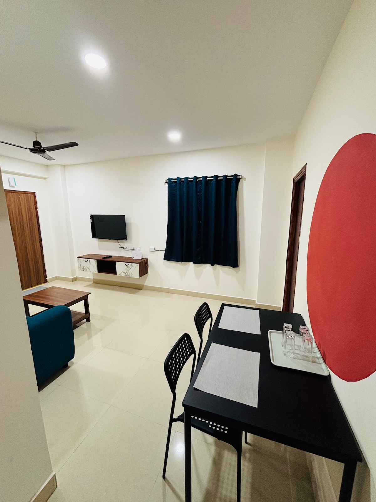 Μείνετε σε ένα μοντέρνο διαμέρισμα με υπηρεσίες ξενοδοχείου, 1 υπνοδωμάτιο και σαλόνι, κοντά στο Hitech City. Λίγα λεπτά από τα κέντρα πληροφορικής, το Gachibowli, το Madhapur και το Financial District. Απολαύστε ένα άνετο σαλόνι με WiFi και Smart TV, μια πλήρως εξοπλισμένη μικρή κουζίνα, ένα άνετο υπνοδωμάτιο με κλινοσκεπάσματα υψηλής ποιότητας και ένα καθαρό μπάνιο με ζεστό νερό. Ιδανικό για επαγγελματίες, οικογένειες ή μεγάλες διαμονές, προσφέρει την άνεση του σπιτιού με υπηρεσίες ξενοδοχείου.