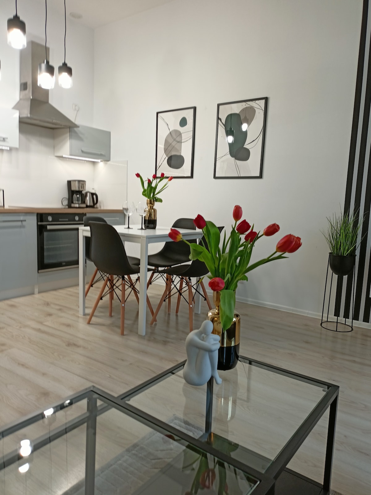 Αυτός ο κομψός χώρος είναι ιδανικός τόσο για διακοπές όσο και για επαγγελματική διαμονή. Ένα διαμέρισμα δύο επιπέδων θα σας προσφέρει άνετες συνθήκες διαβίωσης και ένας υπόγειος σταθμός γκαράζ θα προστατεύσει το αυτοκίνητό σας. Η νέα πολυκατοικία διαθέτει ένα ήσυχο ασανσέρ, οπότε η πρόσβαση στον 2ο όροφο δεν θα είναι πρόβλημα. Στον ημιώροφο υπάρχει ένα μεγάλο ευρύχωρο υπνοδωμάτιο και στο κάτω μέρος υπάρχει ένα πτυσσόμενο διπλό άνετο κρεβάτι. Ολόκληρο το διαμέρισμα είναι πλήρως εξοπλισμένο με όλα τα απαραίτητα αξεσουάρ