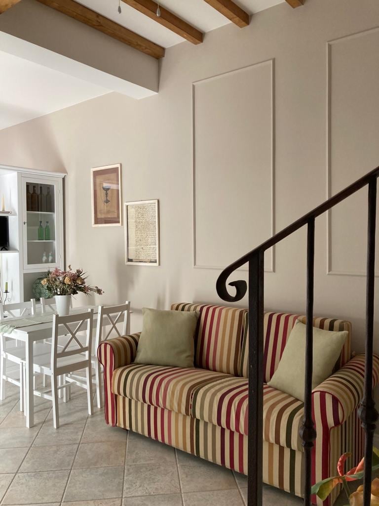 A luxury apartment that blends traditional elements with all the modern comforts and some contemporary wall art. The apartment is centrally located in the upper part of town, only around the corner from the main square, in the limited traffic area. You can drive close by to download the luggage. The closest free car park is located at less than 10 minutes walk. Please note that to reach the house you need to walk a fairly steep street: it may not be ideal for those with mobility problems.