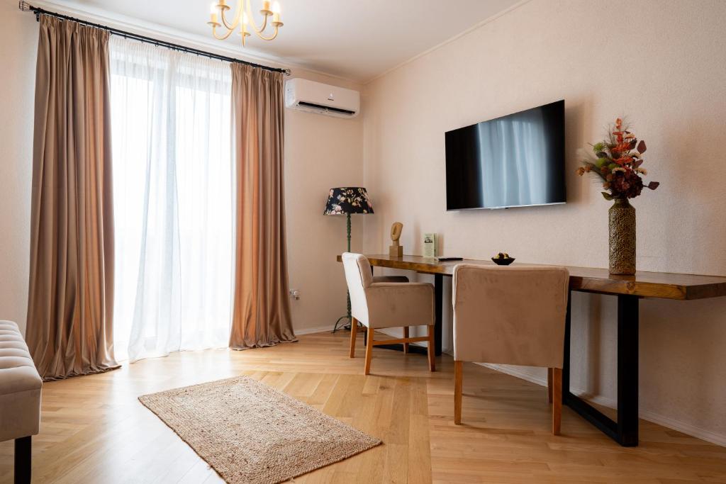 Μοντέρνο διαμέρισμα 2 υπνοδωματίων και 2 μπάνιων, που βρίσκεται στην οδό Ialomiței Way αρ. 210, Târgoviște. Ευρύχωρο σαλόνι με καναπέ και Smart TV, πλήρως εξοπλισμένη κουζίνα, άνετα υπνοδωμάτια και κομψά μπάνια (ντους + μπανιέρα). Διατίθεται δωρεάν Wi-Fi, κλιματισμός, πλυντήριο ρούχων και πάρκινγκ. Κοντά στον Πύργο της Τσινδία και την Αυλή του Πρίγκιπα. Ιδανικό για οικογένειες ή ζευγάρια.