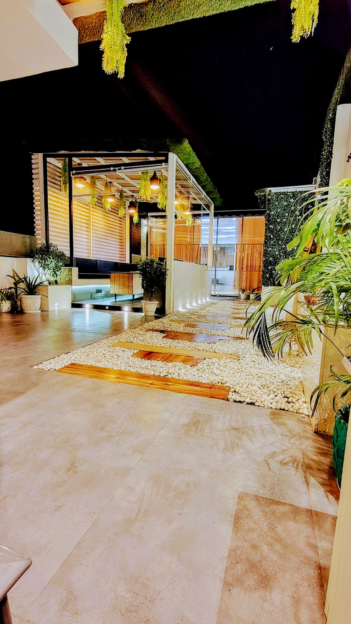 ➽ Spacious 1BHK apartment with an attached patio, fully air-conditioned. All rooms have 1.5-ton ACs. ➽ Sun-facing property in a high-income neighborhood, three-side open, park-facing, and well-ventilated with ample natural light and fresh air. ➽ High-end projector with 25W soundbar and Amazon FireStick with OTT apps. ➽ Fully equipped kitchen with essentials for convenient cooking. ➽ Relax on the stunning private terrace patio with ambient lights and unique Foger system for cooling the patio