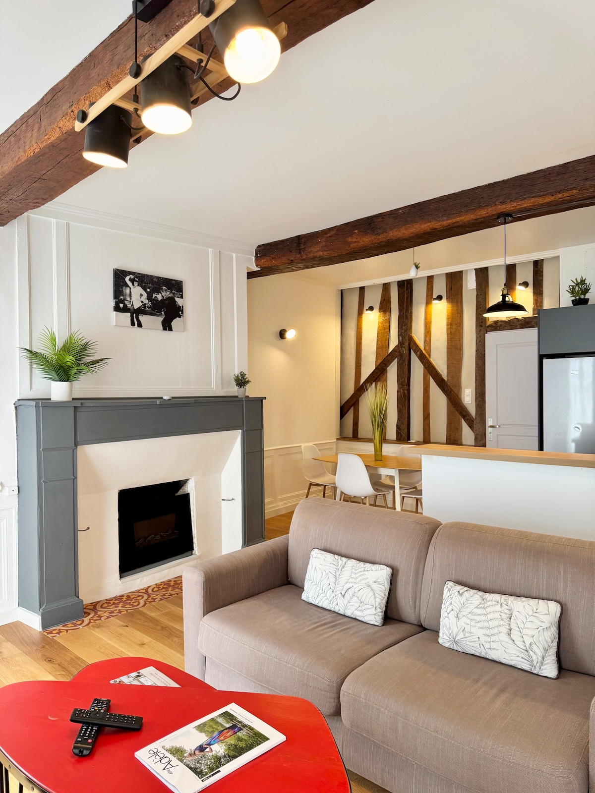 SITUATION idéale dans centre Historique proche cathédrale, place des Lices, Mairie. Vue sur les toits, la cathédrale. APPARTEMENT: Sous les toits 70 m² au dernier étage d'un immeuble ancien classé à colombage typique de Rennes Volumes généreux et calme. Déco sympa ATOUTS: Situé dans l’hyper centre. Idéal pour visiter Rennes. Pour Couple Famille ou Professionnel. BON A SAVOIR: 4ème étage sans ascenseur. Dernier étage étroit. Escalier de meunier Sous les toits Parking gratuit non garanti