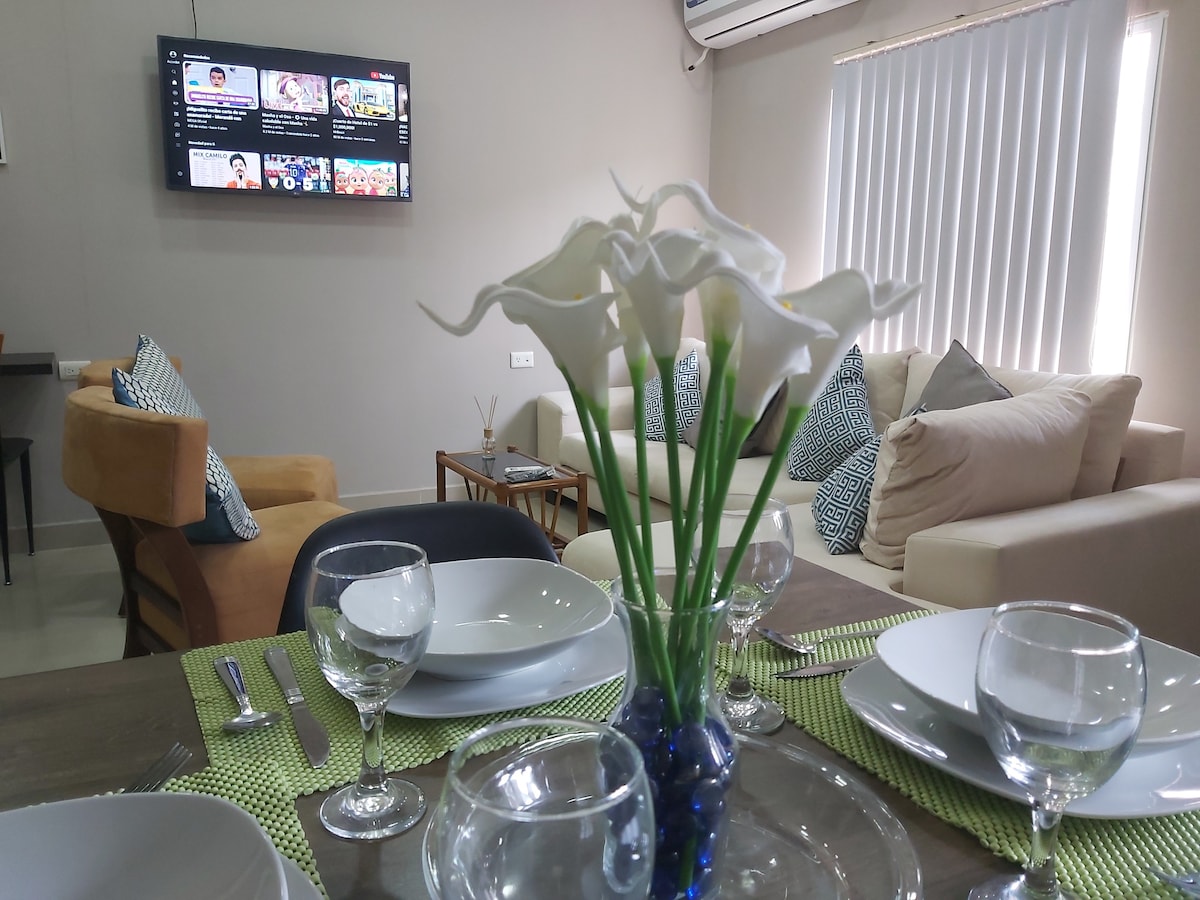 Ολοκαίνουργια σουίτα, κομψή, νέα, 100% ασφάλεια με φύλακες, στο καλύτερο μέρος στο Machala Plaza Noah, ιδανική για επαγγελματικά ταξίδια ή ταξίδια για ζευγάρια.