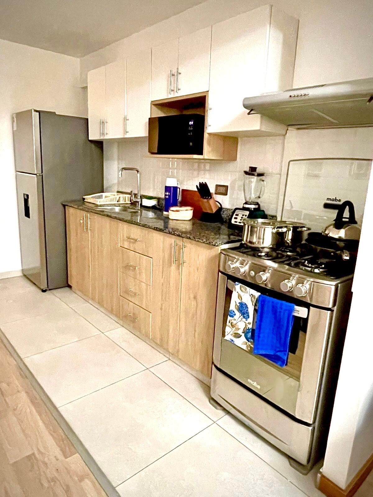 Απολαύστε μια αξέχαστη εμπειρία σε αυτό το πλήρως επιπλωμένο διαμέρισμα που βρίσκεται σε μια κεντρική περιοχή της Λίμα, 20 λεπτά από το αεροδρόμιο και 10 λεπτά από την παραλία, κοντά σε εμπορικά κέντρα (Plaza San Miguel, Real Plaza Salaverry), σούπερ μάρκετ, τράπεζες, εστιατόρια. Διαθέτει 2 υπνοδωμάτια με ντουλάπες, 2 πλήρη μπάνια, σαλόνι, τραπεζαρία, πλήρως εξοπλισμένη κουζίνα με σκεύη και συσκευές, το πλυντήριο έχει αυτόματο πλυντήριο και θερμαινόμενο νερό.