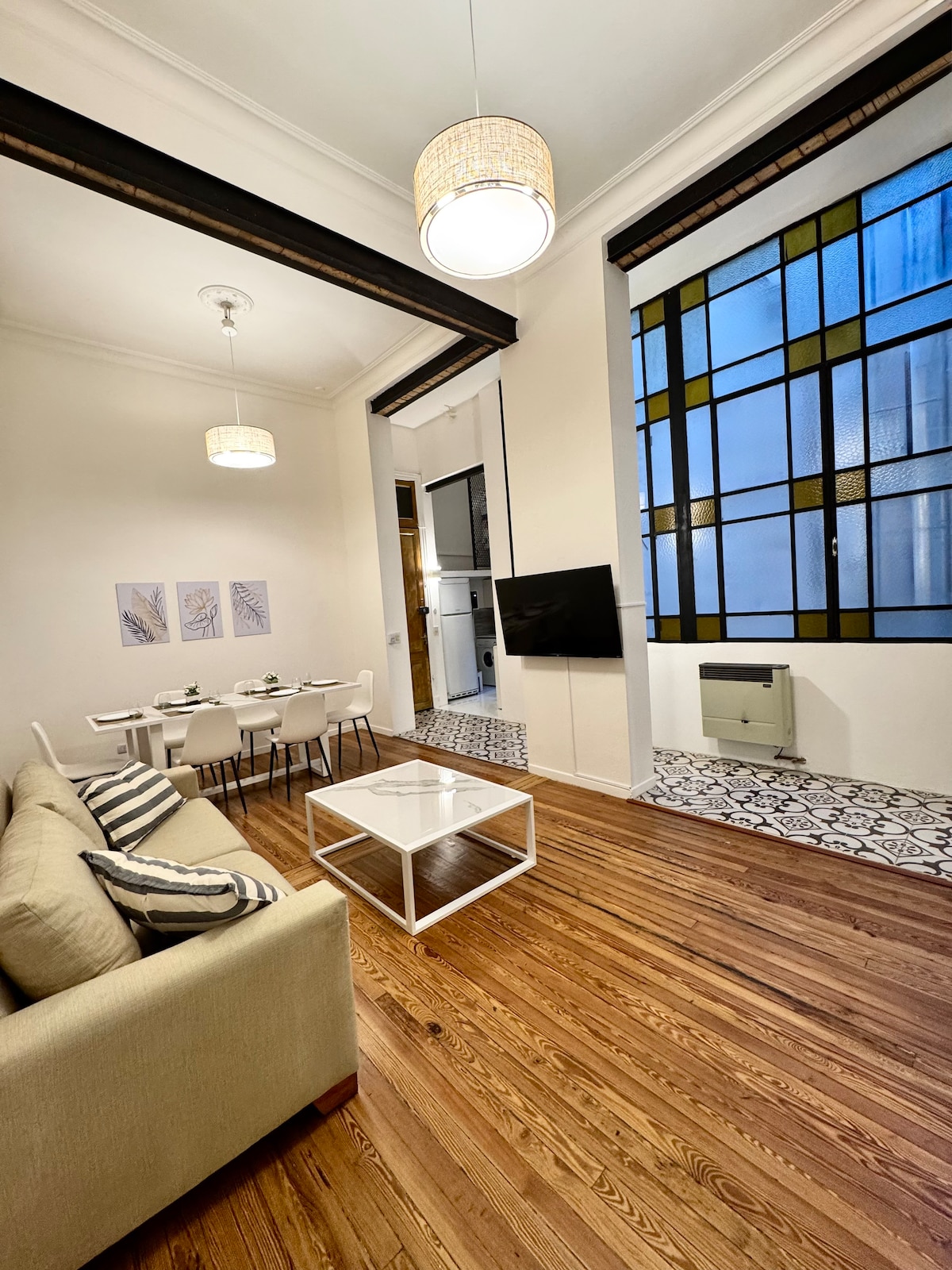 Όμορφο διαμέρισμα, σε κτίριο που αποτελεί κληρονομιά του Μπουένος Άιρες, με δύο ευρύχωρα υπνοδωμάτια και χωρητικότητα 5 ατόμων. Εξαιρετική τοποθεσία, στην καρδιά της τουριστικής πόλης. Ζήστε την εμπειρία της ανακάλυψης της μαγείας του Μπουένος Άιρες, μένοντας σε ένα διαμέρισμα με στυλ και πλήρως ανακαινισμένο, που βρίσκεται στον δεύτερο όροφο (υπάρχουν ανελκυστήρες) ενός κτιρίου με 100 χρόνια ιστορίας, αντιπροσωπευτικό του Art Deco, που έχει κηρυχθεί Πολιτιστική Κληρονομιά της πόλης του Μπουένος Άιρες.