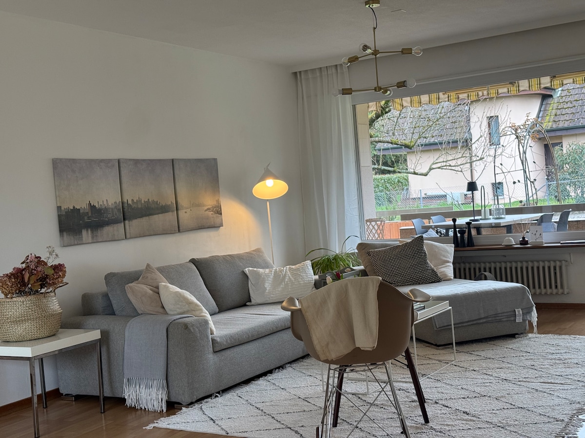 Tranquil Studio with Stunning Basel Views Cozy 16m² studio (built 2025) with private entrance, garden, and panoramic Basel views. Ideal for two guests. Hotel-style comforts, fridge, coffee machine, elegant bathroom with rain shower. Two beds (80x200 & 90x200). WiFi, Apple TV, Netflix, Disney+. 12 km from ESC St. Jakob (14 mins by car/30 mins by public transport). Optional daily cleaning services available.