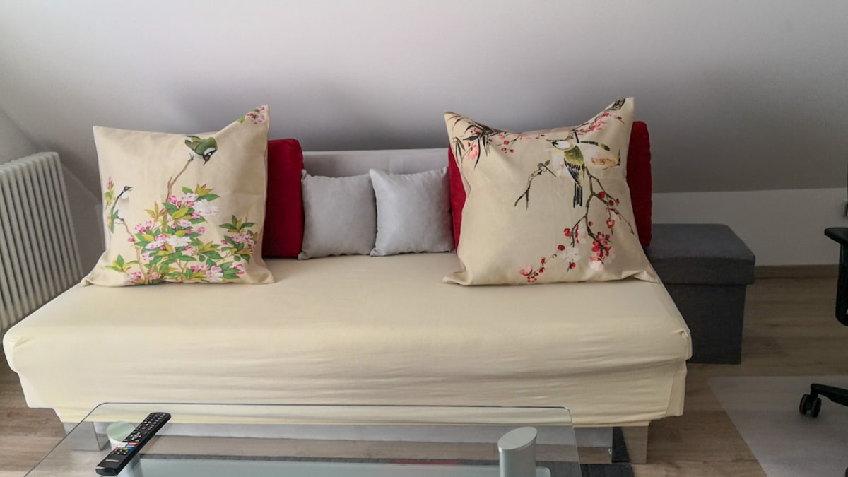 Die kürzlich renovierte Ferienwohnung befindet sich im Dachgeschoss unseres Hauses in ruhiger Lage. Zur Wohnung gehören ein geräumiges Schlafzimmer mit Doppelbett, ein kleines Schlafzimmer mit ausgezogenem Schlafsofa, ein Wohnzimmer mit Küchenzeile, und ein kleines, modernes Bad mit Badewanne. Ein perfekter Ausgangspunkt für Ausflüge innerhalb Singens oder Touren zum Bodensee oder in die Schweiz. Einkaufsmöglichkeiten und Spazierwege sind fußläufig zu erreichen.