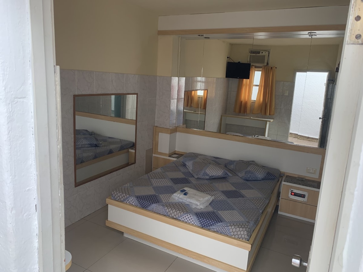 Suíte aconchegante bem no Centro de Niterói! 1 quarteirão (230 metros) do Shopping Plaza, 2 quarteirões (260 metros) da Estação das Barcas de Niterói, 2.5 kilometros da Praia de Icaraí, e de fácil acesso a diversas lojas e restaurantes populares ficando neste espaço charmoso, é muito bem centralizado! Suíte com banheiro privativo, ar-condicionado, TV e rádio! Temos serviço de recepcionista 24 horas por dia, e um simples café da manhã servido no quarto! Além de um serviço de quarto simples!