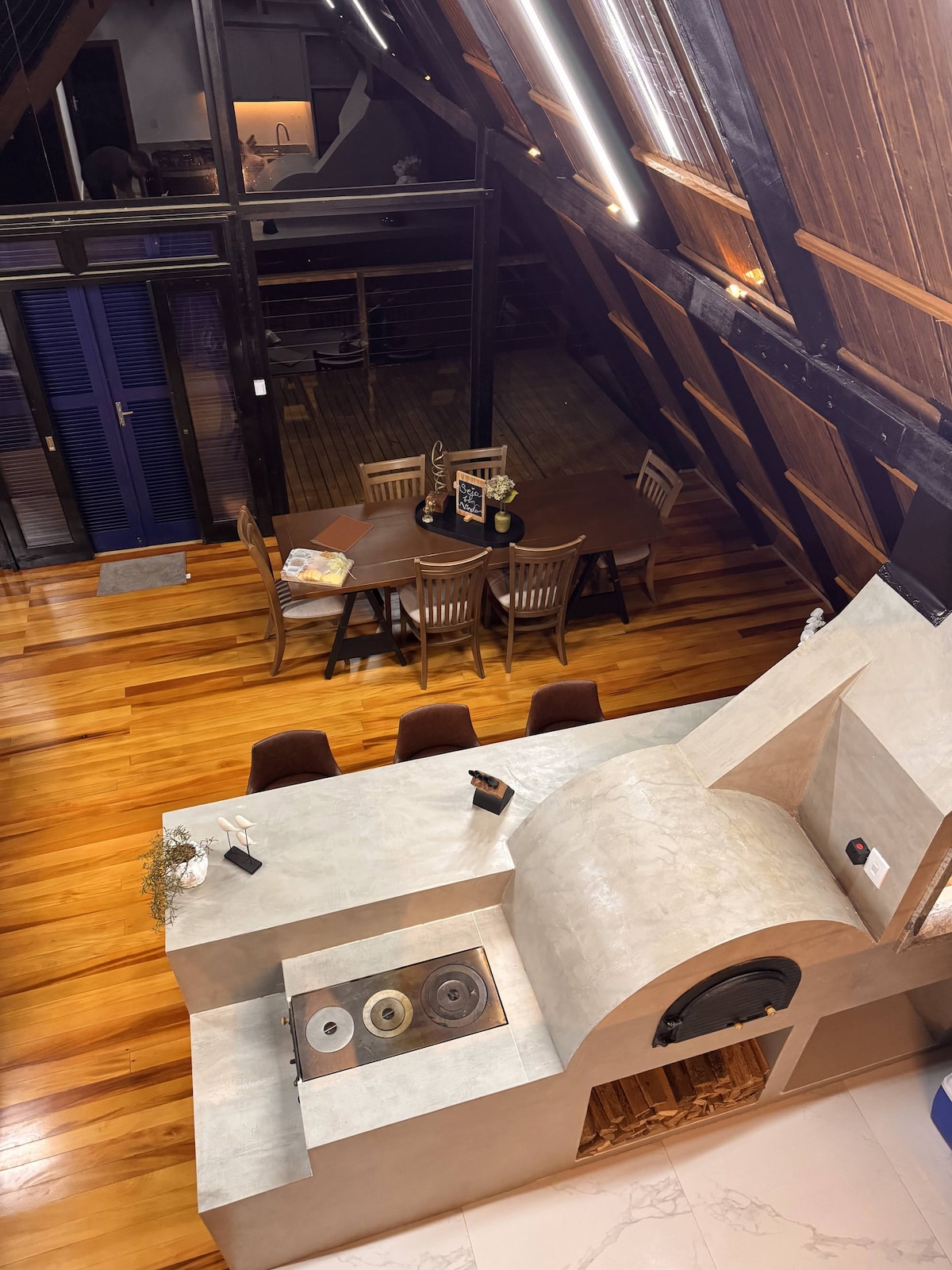 Refúgio premium à beira de um lago privativo. Chalé espaçoso com fogão a lenha, forno de pizza e churrasqueira. Enxoval 400 fios, chuveiro a gás de alta pressão e cozinha completa. Sob solicitação, oferecemos café da manhã artesanal e decoração romântica. Localizado em um sítio de 30 hectares com total privacidade, trilhas exclusivas e pôr do sol inesquecível. Acesso fácil, ideal para casais e famílias. Ar condicionado nos dois quartos.