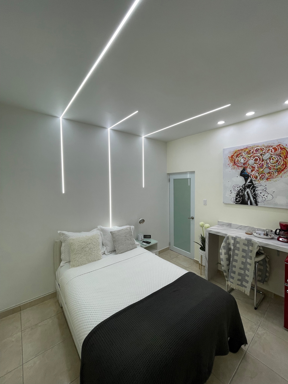 Άνετο διαμέρισμα 2ου ορόφου στη μητροπολιτική περιοχή του Ρίο Πιέντρας. Κοντά στο αεροδρόμιο (8 λεπτά), το παλιό Σαν Χουάν (15 λεπτά), το Coliseo Miguel Agrelot (5 λεπτά), την παραλία Isla Verde (12 λεπτά). Ο καλύτερος τρόπος για να μετακινηθείτε είναι με Uber ή ενοικιαζόμενο. Πολύ καθαρό, ιδιωτικό, πλήρως επιπλωμένο και όλα τα απαραίτητα. Ένα υπνοδωμάτιο ξενοδοχείου με διπλό κρεβάτι, κλιματισμό inverter, ντουλάπα και μπάνιο. Βασική κουζίνα με όλα τα απαραίτητα, κουζίνα υγραερίου, φούρνο μικροκυμάτων και μικρό ψυγείο. Διαθέσιμο WiFi. Κοινόχρηστη είσοδος (σκάλες)