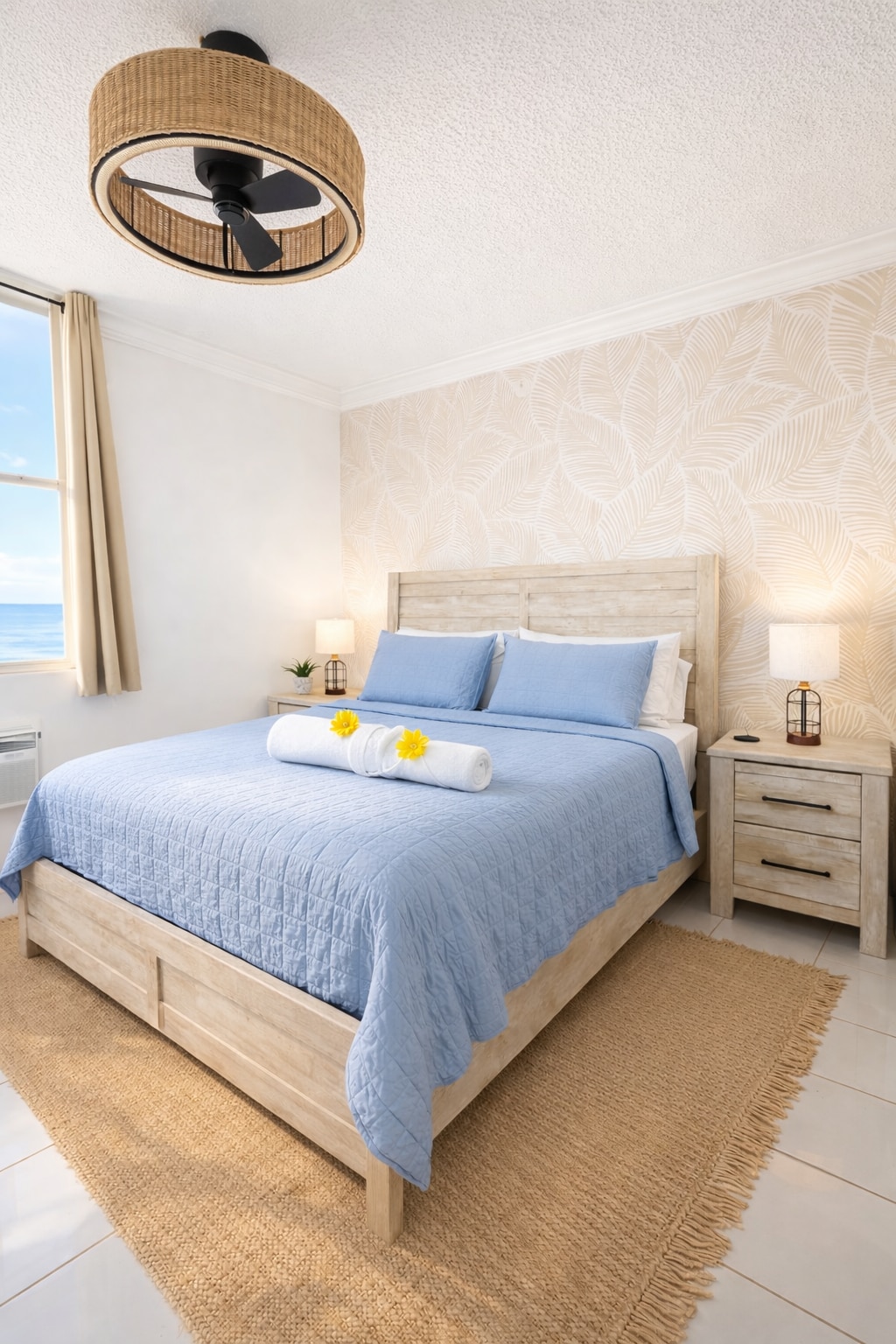 Μπείτε σε ένα παραθαλάσσιο καταφύγιο με εκπληκτική θέα στον ωκεανό. Οι πανοραμικές πόρτες ανοίγουν πλήρως στο μπαλκόνι, συνδυάζοντας την εσωτερική άνεση με το αναζωογονητικό θαλασσινό αεράκι. Απολαύστε άμεση πρόσβαση στην παραλία, μια αστραφτερή πισίνα, Wi-Fi υψηλής ταχύτητας και καθορισμένο χώρο στάθμευσης. Χαλαρώστε στην αιώρα, περπατήστε κατά μήκος της ακτής ή χαλαρώστε στο μπαλκόνι, καθώς τα κύματα παρέχουν το τέλειο soundtrack. Αυτή η γαλήνια απόδραση είναι ιδανική για να δημιουργήσετε αξέχαστες παραθαλάσσιες αναμνήσεις.