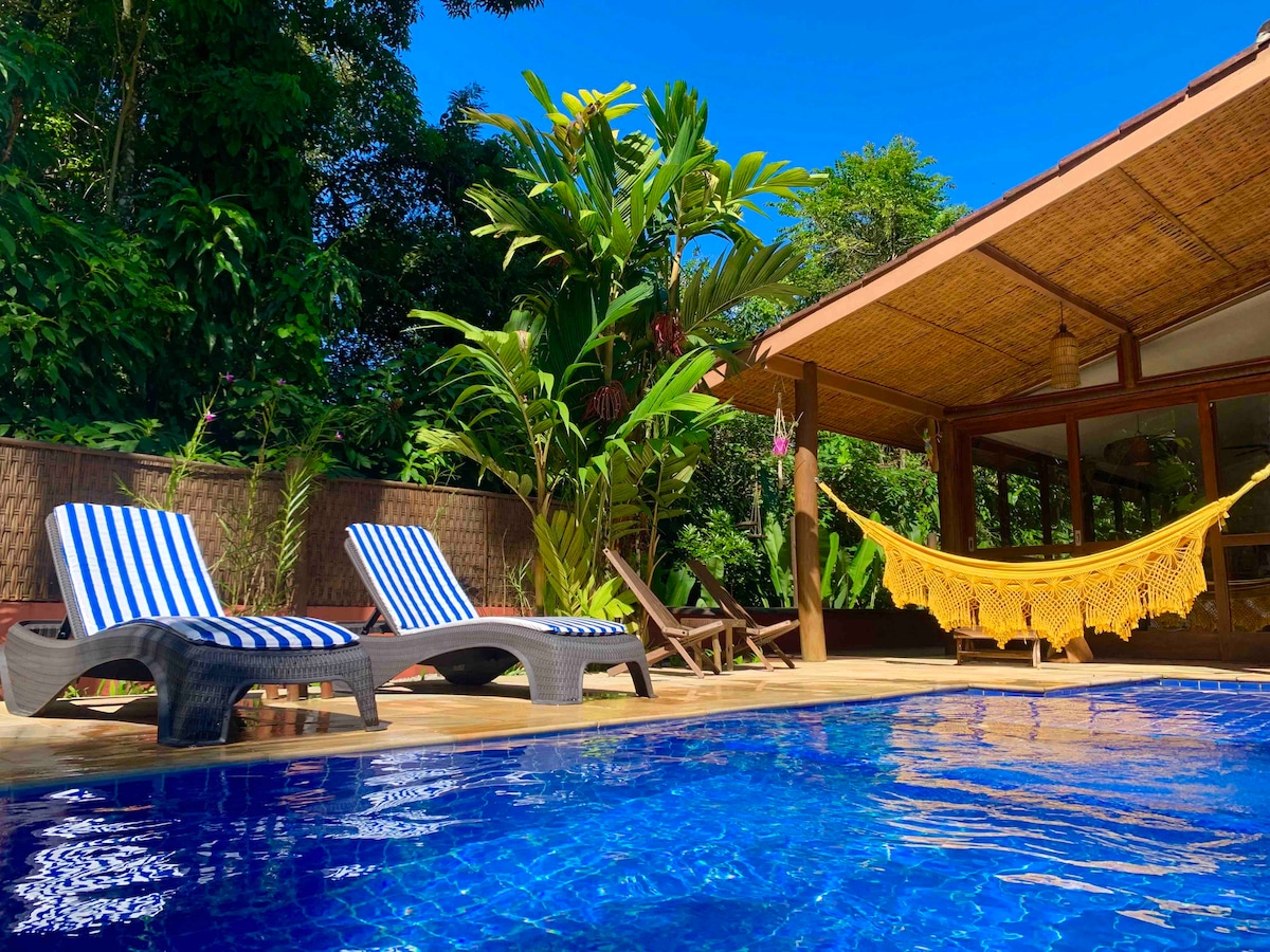 Πιείτε ένα δροσιστικό ποτήρι φυσικό νερό πηγής και, στη συνέχεια, κάντε μια βουτιά στην απομονωμένη φυσική πισίνα σε αυτό το αρχιτεκτονικό αριστούργημα που είναι εμπνευσμένο από τη φύση στην καρδιά του δάσους. Μαζέψτε μπανάνες, αναζητήστε μαϊμούδες και παρακολουθήστε μπλε πεταλούδες να πεταρίζουν. Βρίσκεται στην οικολογική πολυκατοικία Aldeia Rizoma (15-25 λεπτά από το κέντρο του Παρατί), το σπίτι είναι πολύ άνετο, πλήρως εξοπλισμένο και με σύνδεση στο διαδίκτυο Starlink.