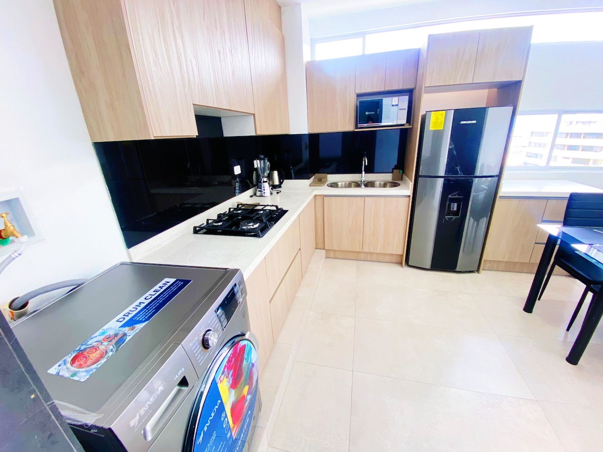 Χαλαρώστε σε αυτόν τον ήσυχο και κομψό χώρο που βρίσκεται στον τομέα μέγιστης ασφάλειας μπροστά από το ECU 911. - Φως 24 ώρες χωρίς διακοπές. - Εντυπωσιακή θέα στην πόλη και τα βουνά από το μπαλκόνι. - Κομψή σχεδίαση. - 5 λεπτά από το κέντρο. - Δωρεάν πάρκινγκ. - Πλυντήριο και στεγνωτήριο