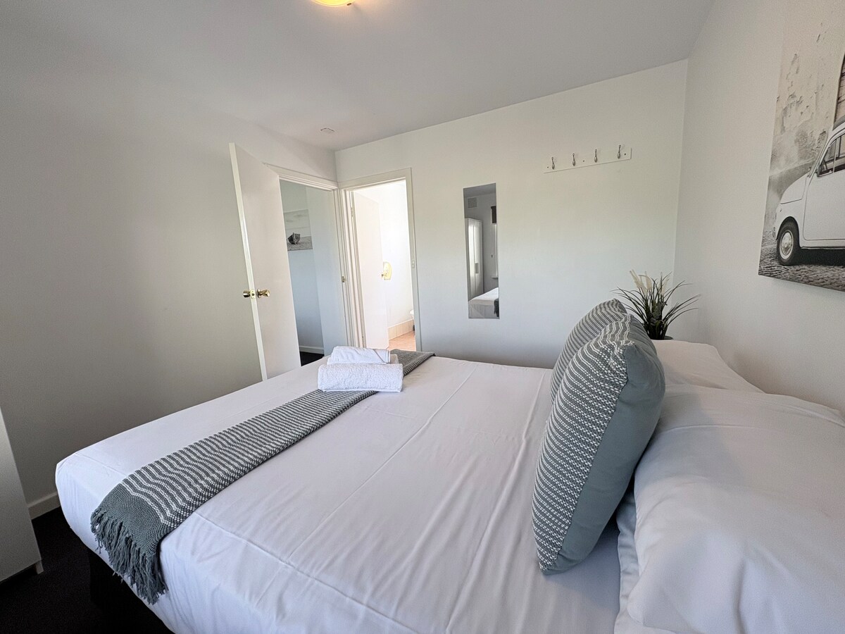 New funky Bali style villa. Beautiful indoor outdoor flow when opened up. Secure keypad card entry with undercover off street parking. Shared Swimming pool (heated - 3 season exc. winter) available on daytime hrs with waterfall feature. 2 Bedroom, TVs In all rooms with Netflix, Stan and Prime connected, Bluetooth wifi Stereo, Aircons to all rooms, indoor fireplace, small library New Addition ! Brand new Deluxe queen overflow room "Bedroom 3 - theroom" available as an extra charge