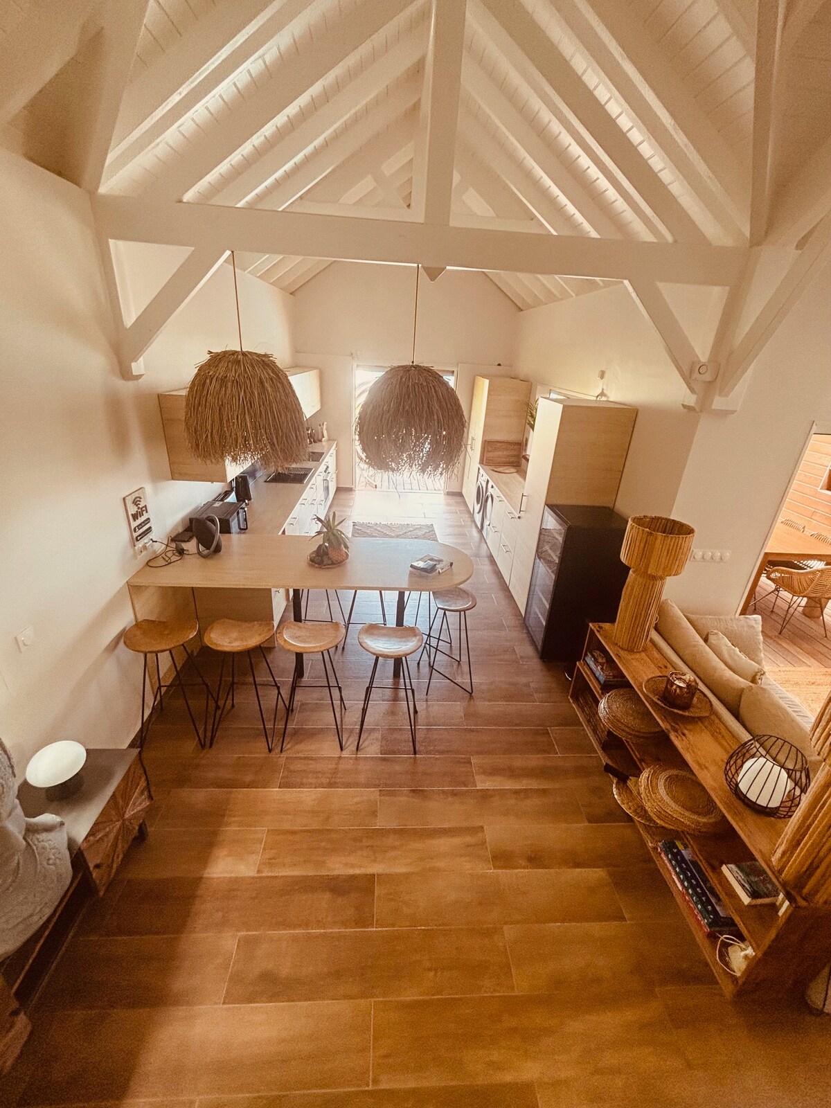 Με τα πόδια στο νερό σε μια παραλία με λευκή άμμο, το σπίτι μας βρίσκεται στο Terre-de-Haut στο αρχιπέλαγος των Αγίων (Γουαδελούπη), φωλιασμένο στην καρδιά του υπέροχου κόλπου του και στην τυπική περιοχή των ψαράδων του Fond de Curé. Κοντά σε όλες τις ανέσεις, δεν χρειάζεται να νοικιάσετε αυτοκίνητο για τα ψώνια σας ή για να πάτε στην παραλία, όλα είναι εκεί. Το σπίτι έχει εμβαδόν 90 τ.μ. σε duplex με βεράντα 30 τ.μ. με θέα στη θάλασσα. Άνεση, ηρεμία και ομορφιά θα σας γεμίσουν με ευτυχία.