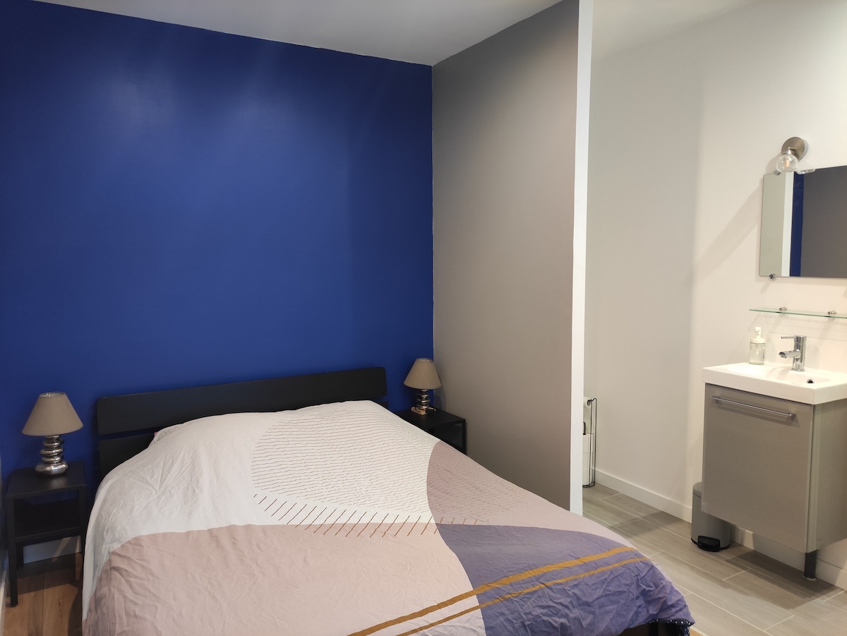 Nous vous proposons un appartement refait entièrement avec soin pouvant accueillir 2 personnes et une supplémentaire grâce à un canapé Clic-Clac. Très chaleureux et cosy avec un coin TV, une salle de bain avec douche et une cuisine toute équipée. Une petite terrasse extérieure fermée indépendante. Très bien situé, proche de toutes commodités ( commerces et entrées d'autoroutes, Bus) Petit Déjeuner possible sur demande.