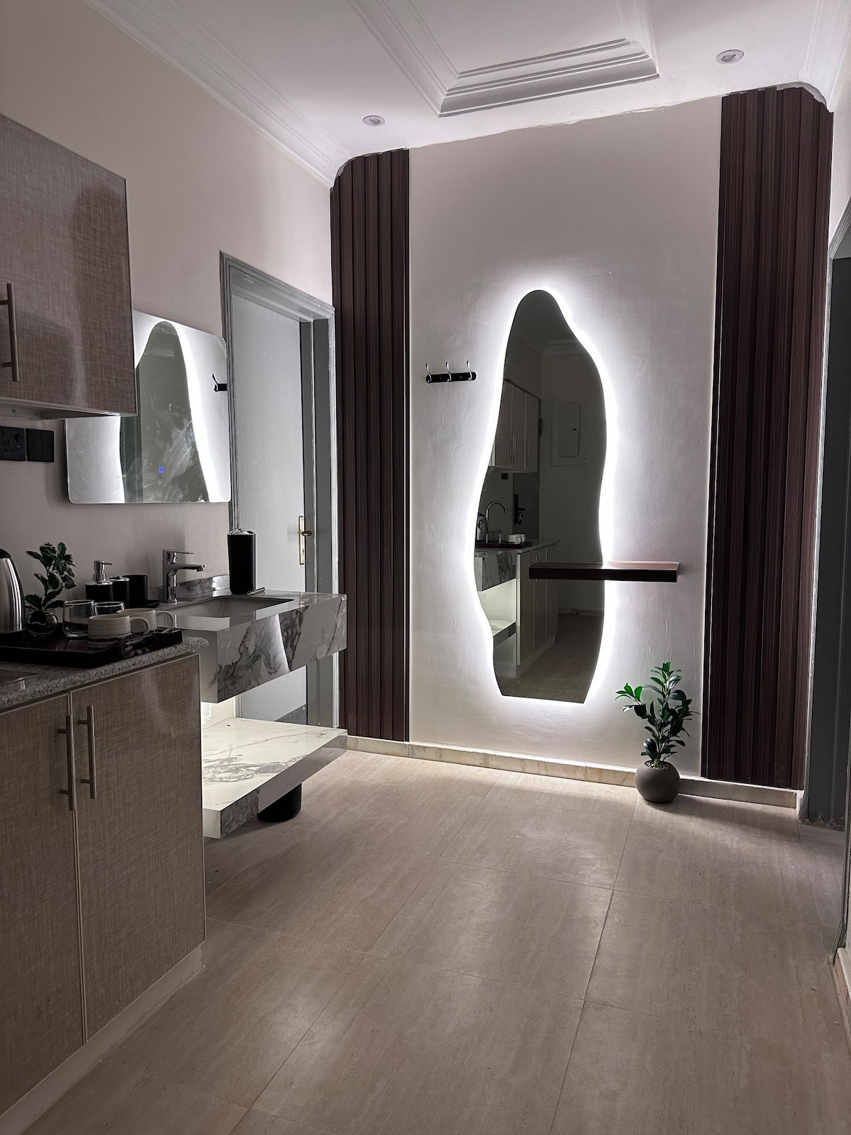 🟢 Υψηλό επίπεδο φιλοξενίας: Η αναγραφόμενη τιμή είναι πλήρως συμπεριληπτική. Ο οικοδεσπότης καλύπτει ευγενικά τον ΦΠΑ 15% για μια εκλεπτυσμένη και εύκολη διαμονή. 🏡 Το διαμέρισμα είναι ένα ευρύχωρο διαμέρισμα ενός υπνοδωματίου με σαλόνι, με ζεστό και ήρεμο σχεδιασμό. Βρίσκεται στην καρδιά του Ριάντ, συγκεκριμένα στην περιοχή Αλ-Μουρούτζ, μόλις λίγα λεπτά από το KAFD, το Boulevard Riyadh, το Boulevard World και τον σταθμό του μετρό, με γρήγορη πρόσβαση σε κεντρικούς δρόμους και σημαντικά αξιοθέατα της πόλης.