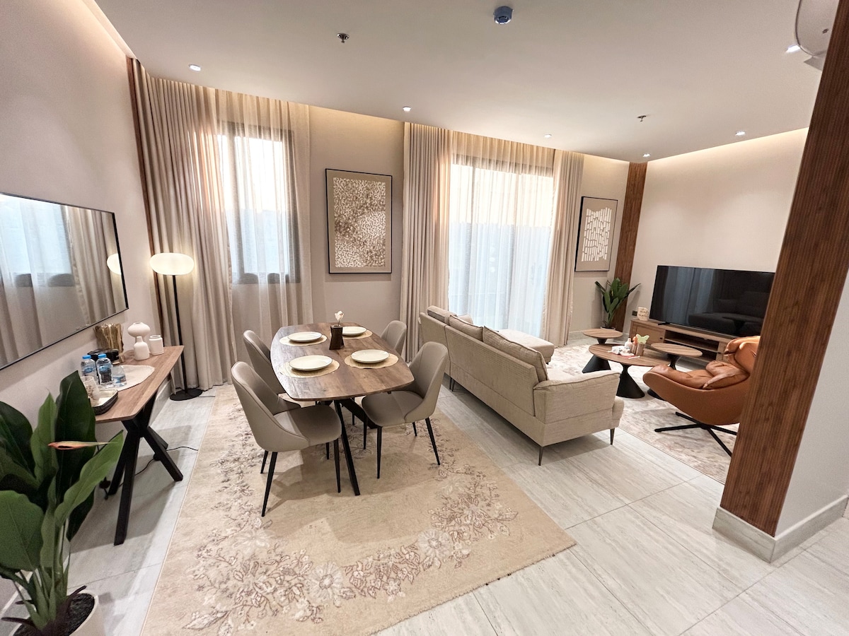 Αναβαθμίστε τη διαμονή σας στο Ριάντ στον 34ο όροφο, με θέα στη Λεωφόρο King Fahd. Κομψό σαλόνι με κυρτό καναπέ, ιδανικό για να απολαύσετε τη θέα της πόλης και τις γιορτές. Διαθέτει ένα άνετο υπνοδωμάτιο, δύο μοντέρνα μπάνια και μια ανοιχτή κουζίνα με γωνιά για καφέ. Ιδανικό για διαμονή στο Ριάντ! Αναβαθμίστε την εμπειρία σας στο Ριάντ στον 53ο όροφο με θέα στο King Fahad Road. Απολαύστε ένα κομψό σαλόνι με έναν κυρτό καναπέ, ιδανικό για θέα στην πόλη και τα φεστιβάλ. Διαθέτει ένα άνετο υπνοδωμάτιο, δύο μοντέρνα μπάνια και μια ανοιχτή κουζίνα με γωνιά για καφέ. Ιδανικό για το Ριάντ!