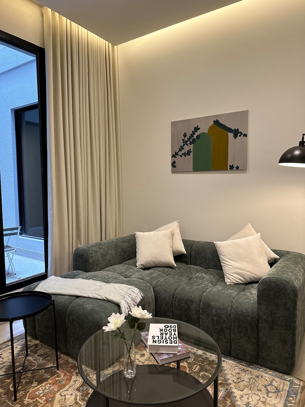 Απολαύστε μια σύγχρονη και άνετη διαμονή σε αυτό το κεντρικό διαμέρισμα 1 υπνοδωματίου. Διαθέτει ιδιωτική ταράτσα με εκπληκτική θέα στο King Abdullah Financial District (KAFD). Φωλιασμένο στην πολυτελή γειτονιά Al Aqeeq, βρίσκεστε μόλις λίγα λεπτά μακριά από κορυφαία αξιοθέατα, καφετέριες, εστιατόρια, σούπερ μάρκετ και μεγάλους δρόμους. Κοντά σε: • Boulevard City – 6 λεπτά • Boulevard World – 7 λεπτά • Αεροδρόμιο King Khalid – 25 λεπτά • KAFD – 9 λεπτά • Αλ Μπουτζάιρι και Ντιρίγια – 13 λεπτά
