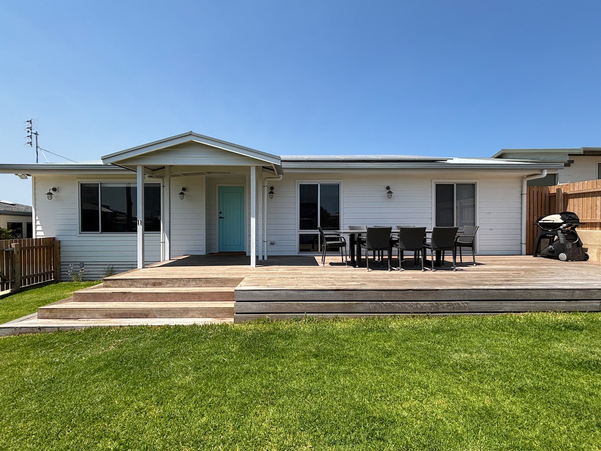 Two Storey - North facing beach home 100 m to ski lake. Located a short walk into the Main Street and Mahalia coffee but away enough from the hustle and bustle. Stroll onto Hoopers beach or jump in the car out to long beach. The ski lake has a beautiful reserve where the kids can have a paddle whilst you cook a bbq. We really hope you enjoy your stay. Our newly renovated front yard is great for games on the lawn or perfect spot to have an afternoon beverage soaking in those rays.
